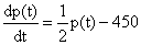 = 0.5 p(t) - 450. If p(0) = 850, then thetime at which the population becomes zero is: