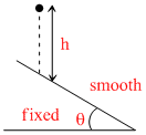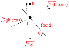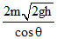 A ball of mass m strikes the fixed inclined plane after falling through a height h. If it rebounds elastically, the impulse on the ball is :