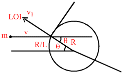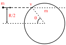 A particle of mass m strikes elastically with a disc of radius R, with a velocity