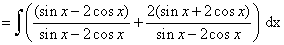 dx = x + a ln|sin x - 2 cos x| + k then a is equal to :
