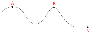 A car is moving with constant speed on a road as shown in figure. The normal reaction by the road on the car is NA , NB and NC when it is at the points A, B and C respectively.