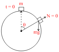 A particle of mass m begins to slide down a fixed smooth sphere from the top. What is its tangential acceleration when it breaks off the sphere ?