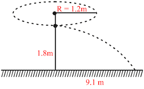 A boy whirls a stone in a horizontal circle 1.8 m above the ground by means of a string with radius 1.2 m. while whirling the stone string was horizontal, it breaks and stone flies off horizontally, striking the ground 9.1 m away. The centripetal acceleration during the circular motion was: (use g = 9.8 m/s2)