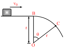 on the horizontal frictionless surface as shown in the Figure. The block leaves the surface at point C. The angle θ in the Figure is :