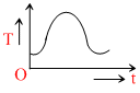 A particle of mass m is suspended from a fixed point O by a string of length l. It is displaced by angle θ (θ < 90o) from equilibrium position and released from there at t = 0 . The graph, which shows the variation of the tension T in the string with time ′t′, may be :
