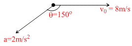 The figure shows the velocity and acceleration of a point like body at the initial moment of its motion. The acceleration vector of the body remains constant. The minimum radius of curvature of trajectory of the body is