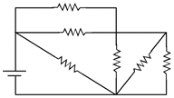 In the figure shown each resistor is of 20 Ω and the cell has emf 10 volt with negligible internal resistance. Then rate of joule heating in the circuit is (in watts)