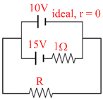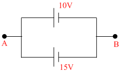 Two cells of e.m.f. 10 V & 15 V are connected in parallel to each other between points A & B. The cell of e.m.f. 10 V is ideal but the cell of e.m.f. 15 V has internal resistance 1 Ω. The equivalent e.m.f. between A and B is:
