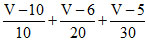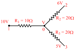 6V − 60 + 3V − 18 + 2V − 10 = 0 ⇒ 11V = 88 ⇒ V = 8 V Ans