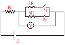 In the circuit shown in figure reading of voltmeter is V1 when only S1 is closed, reading of voltmeter is V2 when only S2 is closed and reading of voltmeter is V3 when both S1 and S2 are closed. Then