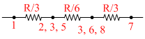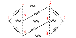 due to input output symmetry potential at point 2, 4, 5, are equal and potential at point 3, 6, 8 are equal