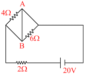 C.potential difference across 4Ω resistance is equal to the potential difference across 6Ω resistance