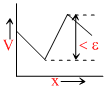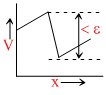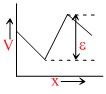 The two ends of a uniform conductor are joined to a cell of emf e and some internal resistance. Starting from the midpoint P of the conductor, we move in the direction of the current and return to P. The potential V at every point on the path is plotted against the distance covered (x). Which of the following best represents the resulting curve?