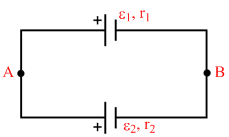 Two cells of unequal emfs e1 and e2, and internal resistances r1 and r2 are joined as shown. VA and VB are the potentials at A and B respectively.