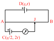 In the potentiometer arrangement shown, the driving cell D has emf e and internal resistance r. The cell C, whose emf is to be measured, has emf ε/2 and internal resistance 2r. The potentiometer wire is 100-cm long. If balance is obtained at the length AJ = l.