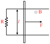 A constant force F is being applied on a rod of length ′l′ kept at rest on two parallel conducting rails connected at ends by resistance R in uniform magnetic field B as shown.