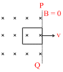 Figure shows a square loop of side 1 m and resistance 1 Ω. The magnetic field on left side of line PQ has a magnitude B = 1.0T. The work done in pulling the loop out of the field uniformly