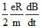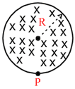 (Tesla/second). An electron of charge q, placed at the point P on the periphery of the field experiences an acceleration :
