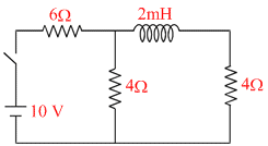 Initially the inductor offers infinite resistance hence i1 is 1A. Finally, at steady state inductor offers zero resistance and current i2 is 1.25 A in the battery.