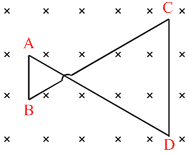 A conducting wire frame is placed in a magnetic field which is directed into the paper. The magnetic field is increasing at a constant rate. The directions of induced currents in wires AB and CD are :