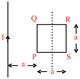 In the figure shown a square loop PQRS of side ′a′ and resistance ′′ is placed near an infinitely long wire carrying a constant current I. The sides PQ and RS are parallel to the wire. The wire and the loop are in the same plane. The loop is rotated by 180o about an axis parallel to the long wire and passing through the mid points of the side QR and PS. The total amount of charge which passes through any point of the loop during rotation is :
