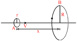 Loop A of radius (r << R) moves towards loop B with a constant velocity V in such a way that their planes are always parallel. What is the distance between the two loops (x) when the induced emf in loop A is maximum