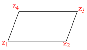 The points z1, z2, z3, z4 in the complex plane are the vertices of a parallelogram taken in order if and only if :
