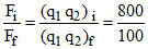 Two similar very small conducting spheres having charges 40 μC and −20 μC are some distance apart. Now they are touched and kept at same distance. The ratio of the initial to the final force between them is :