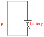 An imaginary closed surface P is constructed around a neutral conducting wire connected to a battery and a switch as shown in figure. As the switch is closed, the free electrons in the wire start moving along the wire. In any time interval, the number of electrons entering the closed surface P is equal to the number of electrons leaving it. On closing the switch, the flux of the electric field through the closed surface: