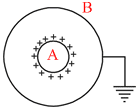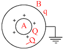 A and B are two conducting concentric spherical shells. A is given a charge Q while B is uncharged. If now B is earthed as shown in figure.Then: