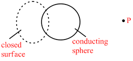 Figure shows a closed surface which intersects a conducting sphere. If a positive charge is placed at the point P, the flux of the electric field through the closed surface: