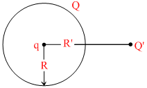 A charge ′q′ is placed at the centre of a conducting spherical shell of radius R, which is given a charge Q. An external charge Q′ is also present at distance R′ (R′ > R) from ′q′. Then the resultant field will be best represented for region r < R by:
