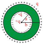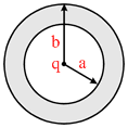 A point charge q is brought from infinity (slowly so that heat developed in the shell is negligible) and is placed at the centre of a conducting neutral spherical shell of inner radius a and outer radius b, then work done by external agent is: