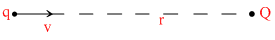 A charged particle ′q′ is shot from a large distance with speed v towards a fixed charged particle Q. It approaches Q upto a closest distance r and then returns. If q were given a speed ′2v′, the closest distance of approach would be :