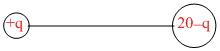 Let the two charges are q & (20 − q) μC
