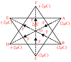 The given figure shows force diagram for charge at O due to all other charges with r =
