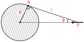A dipole having dipole moment p is placed in front of a solid uncharged conducting sphere as shown in the diagram. The net potential at point A lying on the surface of the sphere is :