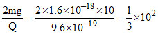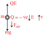 (finelly ) ∴ QE = mg + fair = 2mg∴ charge is −ve, so electric field ′E′ is directed downwards.