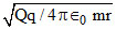 A charged particle of charge ′Q′ is held fixed and another charged particle of mass ′m′ and charge ′q′ (of the same sign) is released from a distance ′r′. The impulse of the force exerted by the external agent on the fixed charge by the time distance between ′Q′ and ′q′ becomes 2r is :