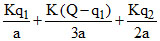 ⇒ 2Q + q1 + 3q2 = 0 .... (1)