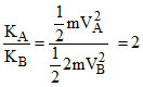 = 2 (where KA & KB are K.E. of A & B respectively)