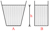 Two vessels A and B of different shapes have the same base area and are filled with water up to the same height h (see figure). The force exerted by water on the base is FA for vessel A and FB for vessel B. The respective weights of the water filled in vessels are WA and WB. Then