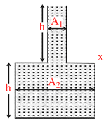The vessel shown in Figure has two sections of area of cross-section A1 and A2. A liquid of density r fills both the sections, up to height h in each. Neglecting atomospheric pressure,
