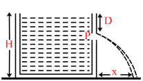 A tank is filled with water up to height H. Water is allowed to come out of a hole P in one of the walls at a depth D below the surface of water as shown in the figure. Express the horizontal distance x in terms of H and D :