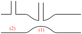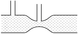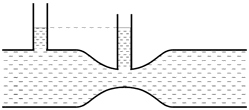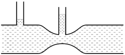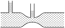 For a fluid which is flowing steadily in the figure shown, the level in the vertical tubes is best represented by
