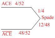 A card is drawn from a well shuffled ordinary deck of 52-playing cards. The card drawn is found to be a spade. Then the probability that the card is an ace, is