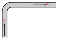 A fire hydrant (as shown in the figure) delivers water of density r at a volume rate L. The water travels vertically upward through the hydrant and then does 900 turn to emerge horizontally at speed V. The pipe and nozzle have uniform cross-section throughout. The force exerted by the water on the corner of the hydrant is