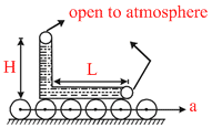 A narrow tube completely filled with a liquid is lying on a series of cylinders as shown in figure. Assuming no sliding between any surfaces, the value of acceleration of the cylinders for which liquid will not come out of the tube from anywhere is given by