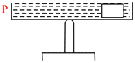 An open pan P filled with water (density ρw) is placed on a vertical rod, maintaining equilibrium. A block of density ρ is placed on one side of the pan as shown in the figure. Water depth is more than height of the block.