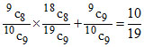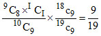 In a purse there are 10 coins, all 5 paise except one which is a rupee. In another purse there are 10 coins all 5 paise. 9 coins are taken out from the former purse & put into the latter & then 9 coins are taken out from the latter & put into the former. Then the chance that the rupee is still in the first purse is: